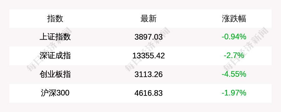 每經(jīng)AI快訊:北京時(shí)間10月10日15:00,上證指數(shù)收盤下跌36.94點(diǎn),跌幅為0.94%,報(bào)收3897.03點(diǎn),成交額11321.27億元;深證成指收盤下跌370.14點(diǎn),跌幅為2.7%,報(bào)收13355.42點(diǎn),成交額13834.93億元;創(chuàng)業(yè)板指收盤下跌148.56點(diǎn),跌幅為4.55%,報(bào)收3113.26點(diǎn),成交額6209.47億元;滬深300收盤下跌92.65點(diǎn),跌幅為1.97%,報(bào)收4616.83點(diǎn),成交額7927.43億元。